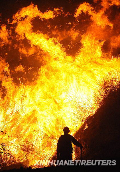 10月12日,在美國洛杉磯市區(qū)以北約20公里的峽谷地區(qū),消防員在準(zhǔn)備滅火。時(shí)速達(dá)每小時(shí)50英里的陣風(fēng)導(dǎo)致這場森林火災(zāi)不斷蔓延,威脅到附近的農(nóng)場和房屋。新華社/路透