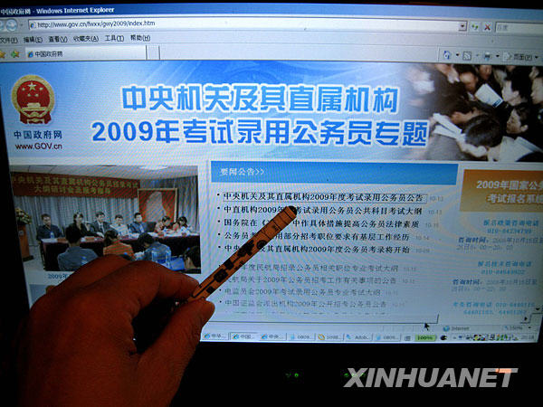 當(dāng)日,2009年國(guó)家公務(wù)員考試開(kāi)始報(bào)名,報(bào)名全部采取網(wǎng)絡(luò)報(bào)名的方式進(jìn)行,不設(shè)現(xiàn)場(chǎng)報(bào)名。
