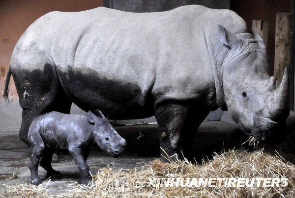 布達(dá)佩斯動(dòng)物園出生白犀牛
