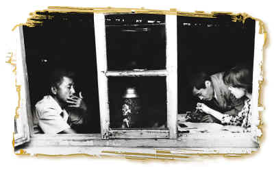 | 破產(chǎn)后,原廠長(zhǎng)石永階(左)在抽著悶煙,看著工人們領(lǐng)取救濟(jì)金證。新華社發(fā) |
