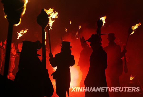 11月5日,人們在英國南部的劉易斯市舉著火把游行。當(dāng)天是英國一年一度的焰火慶典節(jié)日,人們點(diǎn)起篝火,燃放煙花慶祝這一節(jié)日。新華社/路透