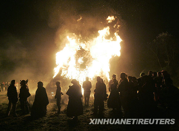 11月5日,人們聚集在英國南部的劉易斯市觀看點(diǎn)燃的篝火。當(dāng)天是英國一年一度的焰火慶典節(jié)日,人們點(diǎn)起篝火,燃放煙花慶祝這一節(jié)日。新華社/路透