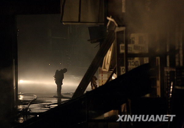 11月10日,俄羅斯消防員在首都莫斯科的火災現(xiàn)場滅火。當日,莫斯科市南的一家建材市場發(fā)生火災,過火面積超過500平方米,截至發(fā)稿時未有人員傷亡的消息。