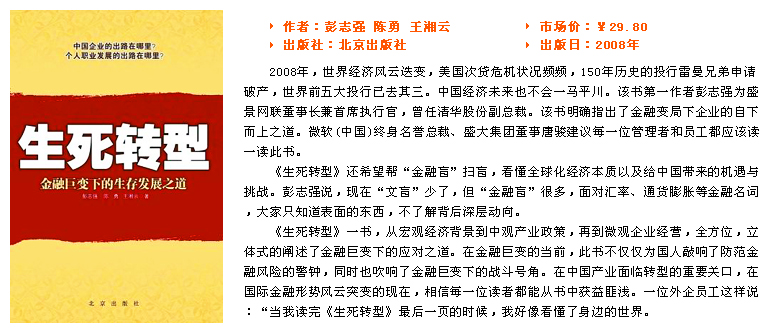 瘋狂的糧價:全球漲3倍,中國怎么辦? 瘋狂的石油價格:四年漲七倍 中長期通貨膨脹趨勢:生死抉擇只在一念間? 通貨膨脹的副產(chǎn)品:銀根緊縮與資金成本上升 金融變局下的企業(yè)經(jīng)營最高法則