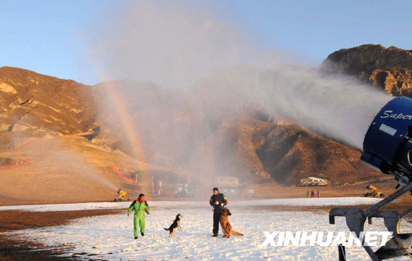 11月15日,滑雪季節(jié)即將到來(lái),北京郊區(qū)一家滑雪場(chǎng)開始造雪,準(zhǔn)備迎接游客。