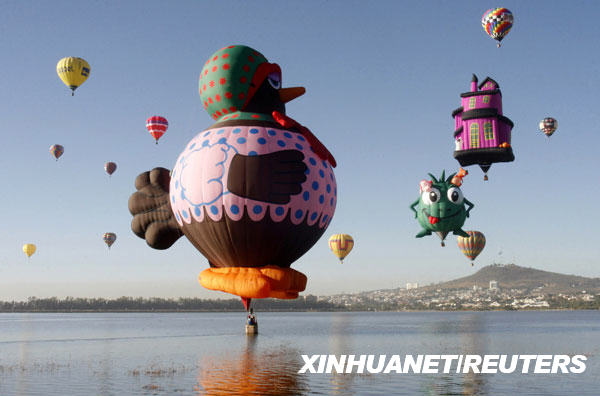 11月17日,在墨西哥瓜納華托州萊昂市的熱氣球節(jié)上,繽紛多彩的熱氣球騰空而起,裝扮秋日天空。新華社/路透