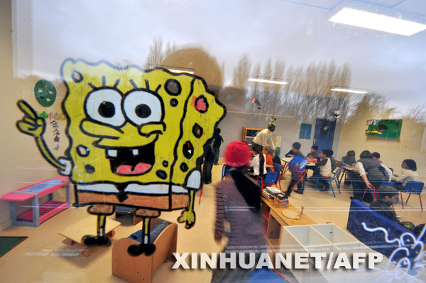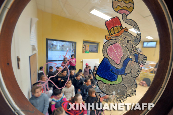 11月20日,在法國西北部的埃魯維勒圣克萊爾,孩子們因教師罷工被送到一個(gè)臨時(shí)的看護(hù)中心。新華社/法新 |