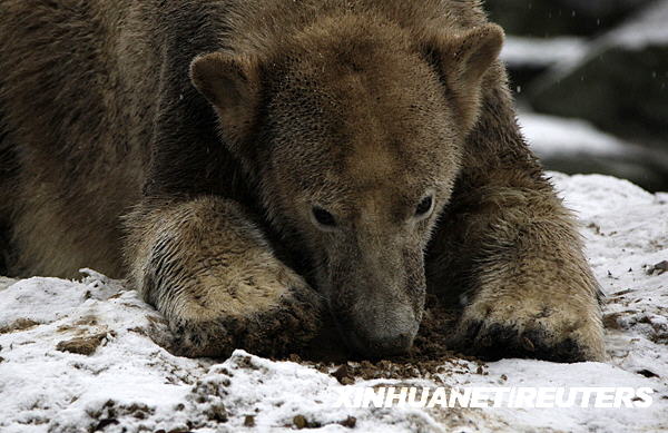 12月3日,德國柏林動物園的明星北極熊“克努特”在熊舍內玩耍!翱伺亍5日將迎來兩歲生日,然而,受金融危機影響,動物園今年非但不準備給它舉辦生日“晚會”,還因財政拮據(jù)宣布將為其另找新家。新華社/路透