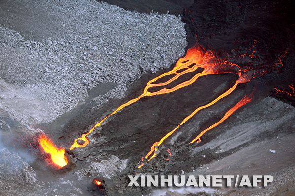 12月15日,法屬留尼汪島上的富爾奈斯火山噴發(fā)出熔巖。留尼汪島是法國(guó)四個(gè)海外省之一,島上的富爾奈斯火山海拔2631米,是世界上最活躍的活火山之一。新華社/法新