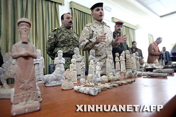 12月16日,伊拉克軍人在南部城市巴士拉展示找回的部分珍貴文物。自從2003年美國(guó)發(fā)動(dòng)伊拉克戰(zhàn)爭(zhēng)以來(lái),伊拉克境內(nèi)約有1.5萬(wàn)件文物失竊,許多文物流入國(guó)外的藝術(shù)品拍賣市場(chǎng)。伊政府目前已找回約8500多件失竊文物。 新華社/法新
