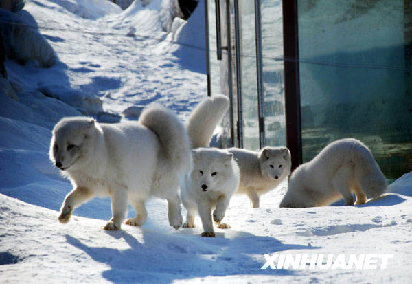 12月25日,幾只北極銀狐在長(zhǎng)春市伊通河畔的冰雪樂(lè)園嬉戲。日前,7只可愛(ài)的北極銀狐在長(zhǎng)春市伊通河畔的冰雪樂(lè)園與游人見(jiàn)面,吸引眾多游人的目光。銀狐原產(chǎn)于北美洲北部、西伯利亞?wèn)|部地區(qū),是赤狐在野生自然條件下的毛色突變種,其體形外貌與赤狐相同,只是在毛色上有巨大差異。