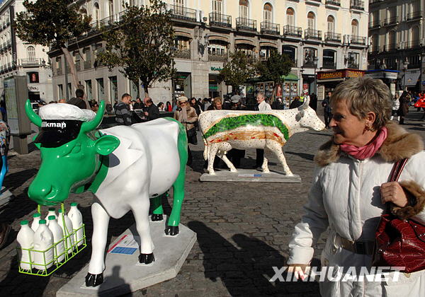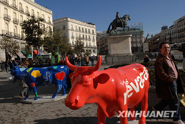 1月16日,在西班牙首都馬德里太陽門廣場,“藝術(shù)!背蔀橐坏廓(dú)特的景觀。 當(dāng)日,100多座造型生動、構(gòu)思精巧的“藝術(shù)!钡袼茏髌吩隈R德里街頭現(xiàn)身!八囆g(shù)!被顒佑1998年起源于瑞士,是世界上著名的公共藝術(shù)活動,已在全球多個城市舉辦。