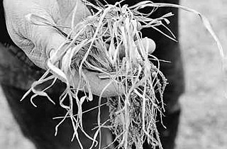 | 2月1日,河南省中牟縣白沙鎮(zhèn)崗李村農(nóng)民查看嚴(yán)重干旱的麥苗。新華社記者