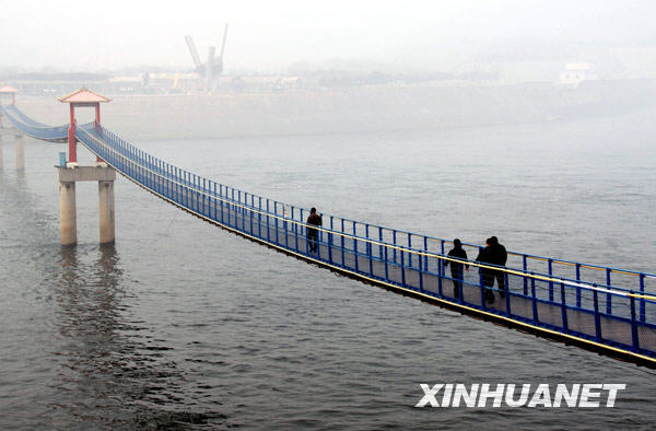 2月5日,幾名游客從黃河小浪底大壩出水口的鐵索橋上走過。鑒于黃河流域多個(gè)省份同時(shí)發(fā)生嚴(yán)重干旱,黃河防總進(jìn)一步提升預(yù)警級別,從2月3日起黃河流域區(qū)域干旱由黃色預(yù)警升級為橙色預(yù)警,啟動(dòng)二級應(yīng)急響應(yīng)。小浪底水庫日均出庫流量也加大至每秒600立方米,以保障沿黃地區(qū)抗旱用水。