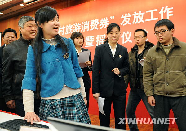 當(dāng)日,南京市舉行“南京鄉(xiāng)村旅游消費(fèi)券”發(fā)放搖號(hào)儀式,由12位市民代表搖號(hào),從主城區(qū)89萬多戶居民家庭中隨機(jī)產(chǎn)生了20萬戶使用消費(fèi)券的家庭,每戶將可獲得100元的旅游消費(fèi)券。