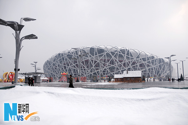鳥巢迎新年首場瑞雪