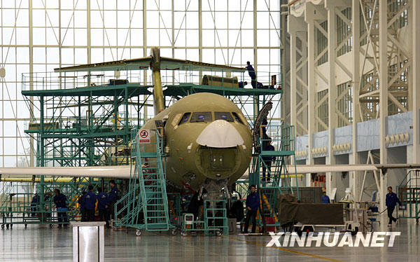 這是曾在2008年11月成功首飛的ARJ21新支線飛機(2月19日攝)。