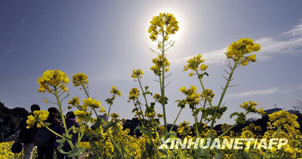 2月22日,在日本東京的一個公園里,一朵朵油菜花迎風(fēng)盛開。新華社/法新