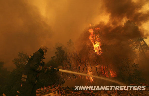 2月23日,在南非開(kāi)普敦郊外,消防員向著火的樹(shù)叢噴水滅火。最近幾周,強(qiáng)勁的東南風(fēng)和干燥的天氣在開(kāi)普敦省引發(fā)多起森林火災(zāi)。新華社/路透