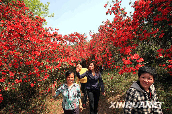 3月15日,在廣西融水苗族自治縣懷寶鎮(zhèn),游客在杜鵑花叢中游玩。陽(yáng)春三月,位于廣西大苗山深處融水縣懷寶鎮(zhèn)的野生杜鵑花競(jìng)相綻放,令前來(lái)賞花的游人沉醉流連。