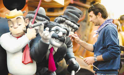 每年3月中旬,西班牙巴倫西亞市都會舉行為期一周的“火節(jié)”,以紀念這座城市的守護神圣約瑟夫。圖為一名藝術(shù)家正在描繪為慶!盎鸸(jié)”而準備的塑像。“火節(jié)”的高潮是燒掉各種奇形怪狀的塑像。新華社發(fā)