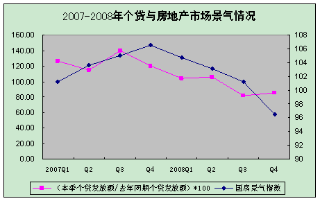 2008年,全國共發(fā)放住房公積金個(gè)人貸款131.13萬筆、2035.93億元,占當(dāng)年繳存額的45.55%。截至2008年末,累計(jì)為961.17萬戶職工家庭發(fā)放個(gè)人住房貸款10601.83億元,同比增長23.77%,個(gè)人貸款余額為6094.16億元,新增余額1019.83億元,增幅為20.10%,個(gè)人貸款余額與商業(yè)性個(gè)人住房貸款余額比例由2007年末的18.77%上升為2008年末的20.43%。 住房公積金個(gè)人貸款與房地產(chǎn)市場景氣情況密切相關(guān),2007年四季度以來,由于房地產(chǎn)市場表現(xiàn)低迷,個(gè)人貸款發(fā)放呈下降趨勢,2008年三、四季度個(gè)貸發(fā)放額同比分別減少18.34%、14.95%,全年同比減少165.64億元,降幅為7.52%。2008年末,全國個(gè)貸率(個(gè)人貸款余額/繳存余額)為50.30%,同比減少2.53個(gè)百分點(diǎn)。