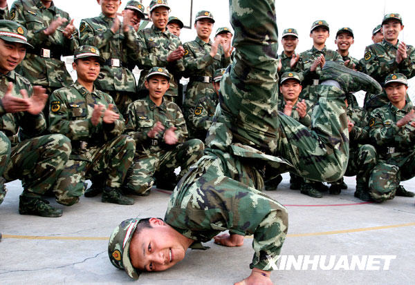武警上?傟(duì)三支隊(duì)2008年底征召的新戰(zhàn)士中,“90后”戰(zhàn)士占新兵總數(shù)80%。這些年輕人在艱苦的連隊(duì)訓(xùn)練中,克服“嬌”“驕”二氣,苦練硬功,勇于挑戰(zhàn)極限,在即將結(jié)束的新兵連入伍訓(xùn)練階段,戰(zhàn)士們逐步克服自身弱點(diǎn),把報(bào)效祖國(guó)和完善自我、追求成功的價(jià)值取向有效地統(tǒng)一起來(lái),初步完成從地方青年到合格軍人的轉(zhuǎn)變。這些“90后”新兵正在部隊(duì)的大熔爐里一步一個(gè)腳印地逐步成長(zhǎng)為名副其實(shí)的鋼鐵戰(zhàn)士。新華社記者