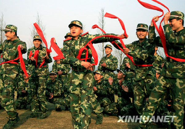 3月29日,新兵連的戰(zhàn)士在訓(xùn)練之余扭起了秧歌。新華社記者:陳飛 攝