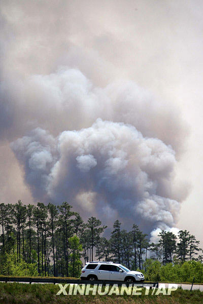 4月23日,山火引發(fā)的滾滾濃煙從美國南卡羅來納州的北默特爾比奇升起。美國南卡羅來納州近日發(fā)生山火,已經(jīng)造成數(shù)十所房屋被毀,數(shù)百人離開家園。新華社/美聯(lián)