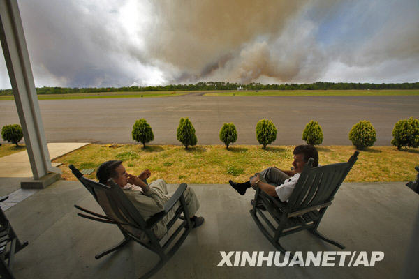 4月23日,在美國南卡羅來納州北默特爾比奇的機(jī)場(chǎng),山火引發(fā)的濃煙從遠(yuǎn)處升起。美國南卡羅來納州近日發(fā)生山火,已經(jīng)造成數(shù)十所房屋被毀,數(shù)百人離開家園。 |
