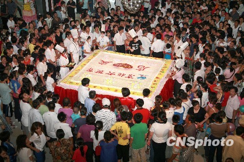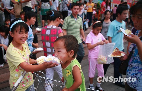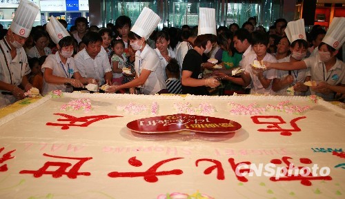 8月18日晚,某商場舉辦“千人體驗(yàn)同吃和諧大蛋糕樂趣”店慶活動(dòng),3600多名北京市民一起體驗(yàn)同吃大蛋糕樂趣,共祝祖國和諧昌盛。