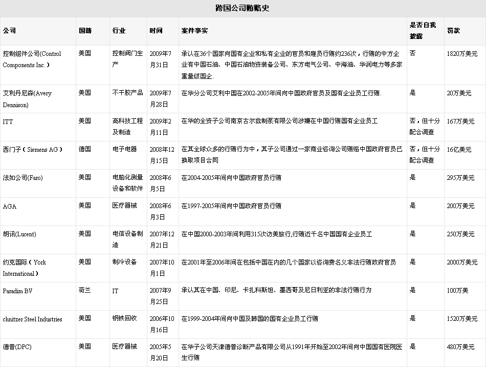 跨國(guó)公司賄賂史