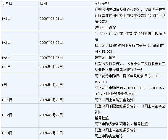 首批創(chuàng)業(yè)板上市公司發(fā)行日期安排