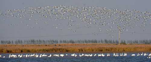 近年來,黃河三角洲自然保護區(qū)所在的山東省東營市對黃河口濕地生態(tài)采取了一系列保護和治理措施,不斷開展鳥類科研與監(jiān)測工作,加之國家對黃河實施科學調(diào)水,黃河三角洲濕地生態(tài)環(huán)境得到明顯改善,保護區(qū)的鳥類日益豐富。據(jù)統(tǒng)計,黃河三角洲自然保護區(qū)濕地的鳥類種類已從187種增加到296種,每年來這里的候鳥約達600萬只。新華社記者