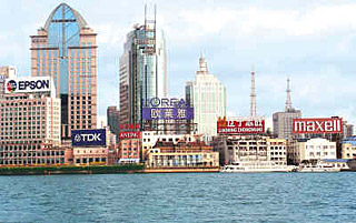 | 圖為上海北外灘琳瑯滿目的跨國公司廣告牌。陳宇杰