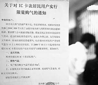 | 鄭州市一燃?xì)釯C卡充值點貼出限購告示。丁潔