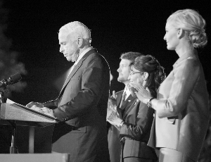 | 4日晚,美國共和黨總統(tǒng)候選人麥凱恩(左一)在亞利桑那州鳳凰城發(fā)表講話