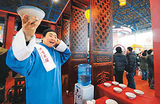 | 圖為北京老舍茶館的工作人員在文博會(huì)上展示北京大碗茶。新華社記者 李文攝 | 為期5天的第三屆中國北京國際文化創(chuàng)意產(chǎn)業(yè)博覽會(huì)日前在北京成功舉行。此次文博會(huì)以“文化創(chuàng)意與服務(wù)貿(mào)易”為主題,提供了交流和交易新平臺,來自全國16個(gè)省區(qū)市的1370家參展商以及韓國、美國、日本等國代表團(tuán)參加。