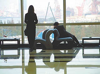 圖為兩位白領(lǐng)在上海商務(wù)樓大廳中休息。據(jù)2004年12月中國(guó)人壽保險(xiǎn)股份有限公司提供的一份白領(lǐng)健康調(diào)查報(bào)告顯示,現(xiàn)代白領(lǐng)普遍面臨“亞健康”和“低心理商數(shù)”雙重健康威脅。尤其在京滬穗等地,認(rèn)為自己身體、心理等各方面均健康的白領(lǐng)不足5%。CFP供圖(資料圖片) |