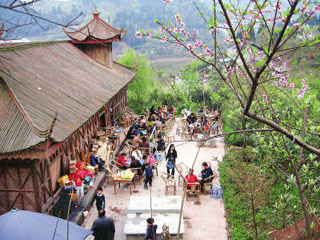 四川成都龍泉洛帶鎮(zhèn)的“農(nóng)家樂(lè)”大打“桃花”牌,吸引眾多游客賞花品茗(資料照片)。肖龍聯(lián) 攝