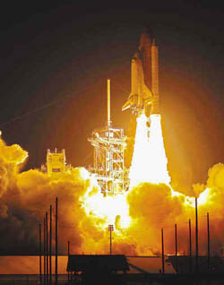 美國“發(fā)現(xiàn)”號航天飛機北京時間16日7時43分在佛羅里達州肯尼迪航天中心發(fā)射升空(見右圖,新華社發(fā))。年初以來,盡管世界經(jīng)濟形勢不容樂觀,國際航天業(yè)卻呈蓬勃發(fā)展之勢。特別是進入3月之后,密集的太空探索活動令人目不暇接:中國嫦娥一號1日成功受控撞月,美國“開普勒”太空望遠鏡6日升空,俄美兩國宇航員11日進行了近5小時太空行走,歐洲地球重力場和海洋環(huán)流探測衛(wèi)星也定于17日發(fā)射……