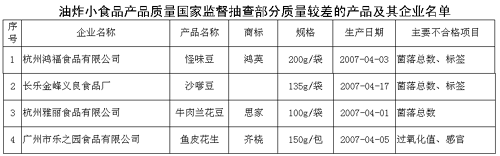 日前,國(guó)家質(zhì)檢總局對(duì)油炸小食品、熟肉制品進(jìn)行了國(guó)家質(zhì)量監(jiān)督抽查,合格率分別為90%、91.9%。 油炸小食品抽查中發(fā)現(xiàn)的主要質(zhì)量問(wèn)題有:首先,少數(shù)產(chǎn)品菌落總數(shù)不合格。其次,產(chǎn)品感官、酸價(jià)、過(guò)氧化值不合格。最后,少數(shù)產(chǎn)品標(biāo)簽標(biāo)注不規(guī)范。 熟肉制品抽查中發(fā)現(xiàn)的主要質(zhì)量問(wèn)題有:1、少數(shù)產(chǎn)品超量超范圍使用食品添加劑;2、個(gè)別產(chǎn)品菌落總數(shù)超標(biāo);3、個(gè)別產(chǎn)品鉛超標(biāo);4、少數(shù)產(chǎn)品標(biāo)簽標(biāo)注不規(guī)范。