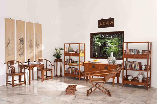 | 隨著近年來(lái)在消費(fèi)者中興起的“古典家具熱”,位于珠江三角洲西南部我國(guó)著名僑鄉(xiāng)臺(tái)山市的大江鎮(zhèn)正逐漸形成具有國(guó)際一流水平的古典家具產(chǎn)業(yè)群。其中,伍氏興隆公司生產(chǎn)的明式古典家具不僅在國(guó)內(nèi)具有一定的影響力,而且還遠(yuǎn)銷到美國(guó)、新加坡等國(guó)家。圖為大江鎮(zhèn)生產(chǎn)的明式古典家具。 | |