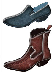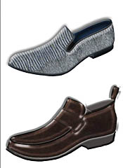 男鞋鞋型的更新途徑是通過對男鞋式樣的精心設(shè)計和對所用材料的明顯處理加工而完成的。與之前的幾季相比,2009/2010秋冬季男鞋流行趨勢并沒有完全脫離過去,來一次突破性的變革。但是,朝著更優(yōu)雅的方向發(fā)展已是顯而易見的了。男鞋款式更豐富而且裝飾性更強是本季不同于以往的一個明顯變化。 ELECTROPOP品牌男鞋通過科技革新完成了對流行文化的一次重新創(chuàng)造。超出足部本身尺寸的超大體積是20世紀(jì)80年代的典型特點。在用材方面,真皮與高科技織物成為鞋面材質(zhì)的主要選擇。使用加長的、符合人體工學(xué)設(shè)計的真皮鞋底,當(dāng)然也有橡膠質(zhì)地的鞋底。在樣式上,工裝式的圓頭皮鞋,彎曲度靈活的膠底運動鞋,如跑步鞋或拳擊鞋等將大行其道。這些鞋在設(shè)計上同樣也用到了閃亮的材質(zhì)以體現(xiàn)其質(zhì)感。 CAFÈCHANTANT品牌男鞋充滿樂觀而有趣的情調(diào),是20世紀(jì)初期鞋型的審美取向。尺寸合腳而且鞋底鞋跟也是力求越小越低越好。鞋的用料非常豐富,同時兼顧到時尚與現(xiàn)代感,光滑、無雜質(zhì)的真皮與小牛皮的運用與表面設(shè)計有復(fù)雜紋理的鞋面形成鮮明對比。頻繁的應(yīng)用立體與印花圖案也是其特點之一。式樣有些是錐形設(shè)計,而有的便鞋則借鑒了一些優(yōu)雅設(shè)計風(fēng)格。有些是圓頭的,有些是馬鞍形的鞋頭,還有一些是寬頭鞋。值得一提的是,這些鞋都非常柔軟,那種裹腿的騎馬靴也不例外。
