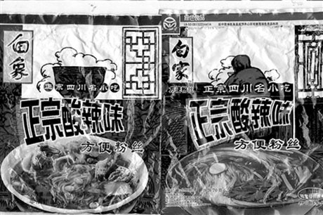 2007年初,白象粉絲上市,四川白家狀告白象粉絲包裝外觀設計專利侵權,向白象索賠人民幣500萬;