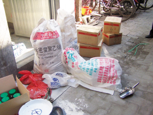 四合院出租房屋內(nèi)制造假冒劣質(zhì)胡椒面制假現(xiàn)場