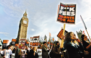 2006年10月29日,倫敦學生舉行了反對學費升高的游行活動。資料圖片 | 附加學費制為主因