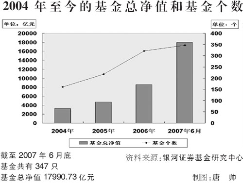 最新統(tǒng)計數(shù)字顯示,截至今年6月底,全國的基金規(guī)模已達12399.96億份,比年初時的6220.67億份增長了近一倍。 當越來越多的人成為“基民”的時候,人們對基金公司也生出了許多好奇:基金公司手握“基民”的資金,是怎樣運作的?基金經理每天怎樣工作、如何操盤?基金公司投資與個人投資有什么不同?為此,記者走進了銀河基金管理有限公司。