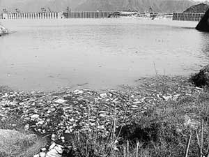 | 圖為湖北宜昌三峽大壩上游壩前庫(kù)區(qū)水面上漂浮的垃圾。劉君鳳