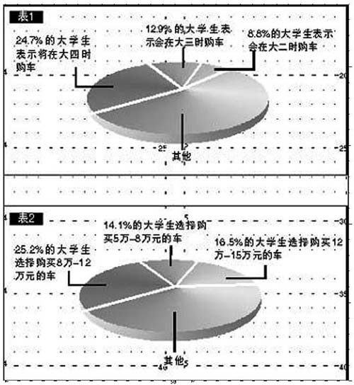 的被調(diào)查者表示將在大四購車,選擇在大四購車的大學(xué)生占多數(shù)(見表1)。